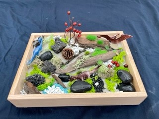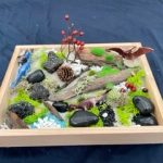 材料は盛岡近郊ので採取した木の実や葉のほかに,海岸で採取した流木や,お取り寄せいただいた各地のきれいな石や苔,出がらした茶葉を乾燥させたものなどバラエティーに富んでいました!