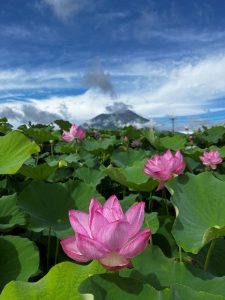 色とりどりのハスが一面に!夏空と岩手山と姫神山が融合して素晴らしい景色にうっとり♪栄養価が高いハスの実も試食させてもらったよ!