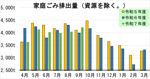 令和7年9月の家庭ごみ(資源を除く。)の排出量は4,217トン。去年の9月は3,998トンだったから、219トン増えているよ。9月のごみは去年より増えちゃったね😞